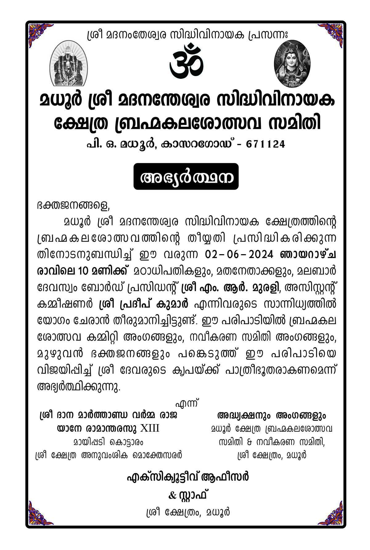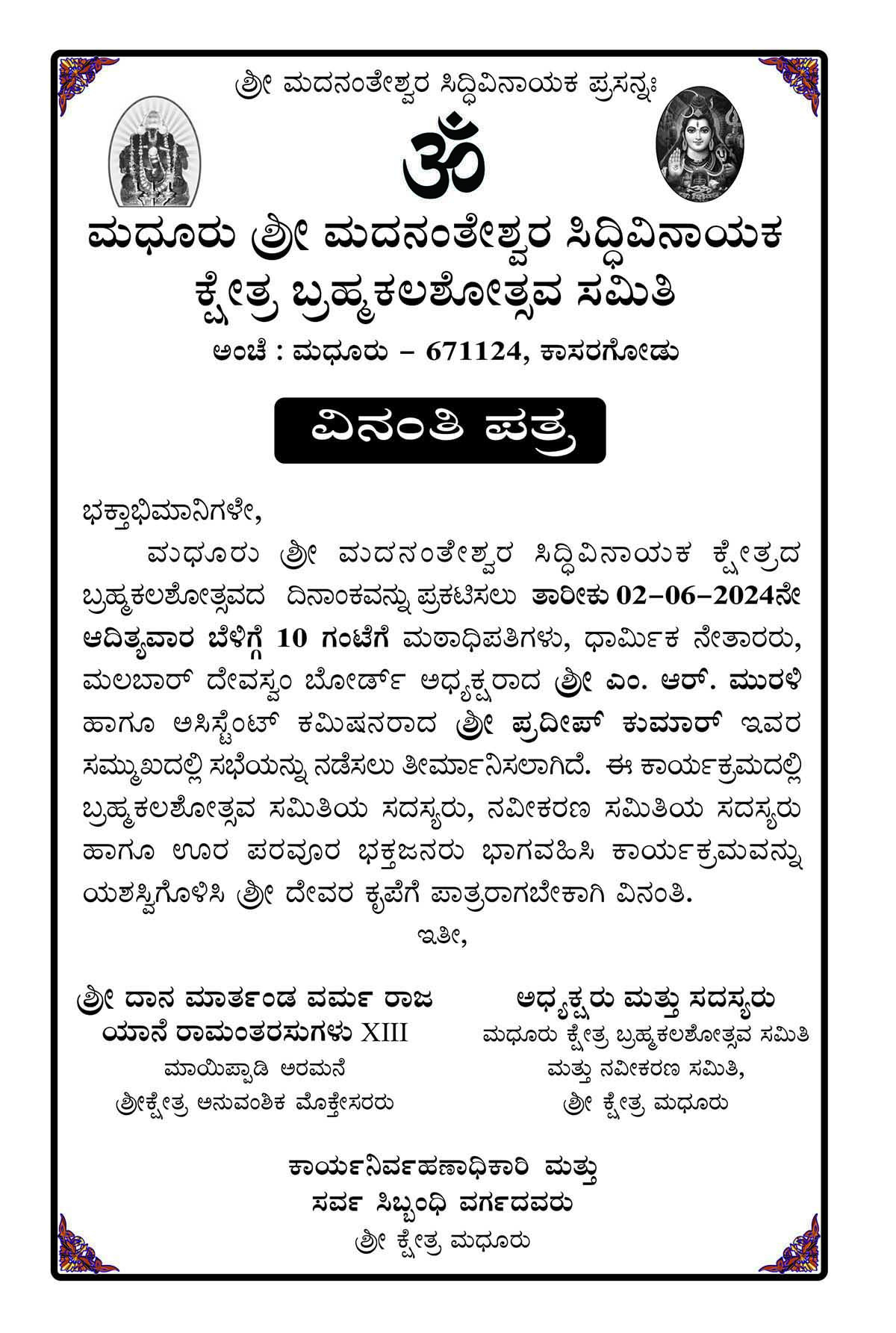 ಬ್ರಹ್ಮಕಲಶೋತ್ಸವ ದಿನಾಂಕ ಘೋಷಣೆ ಸಭೆ 2-6-2024