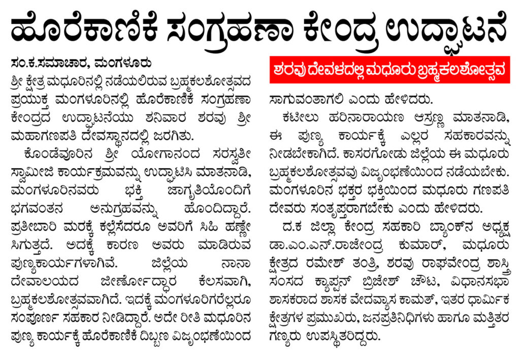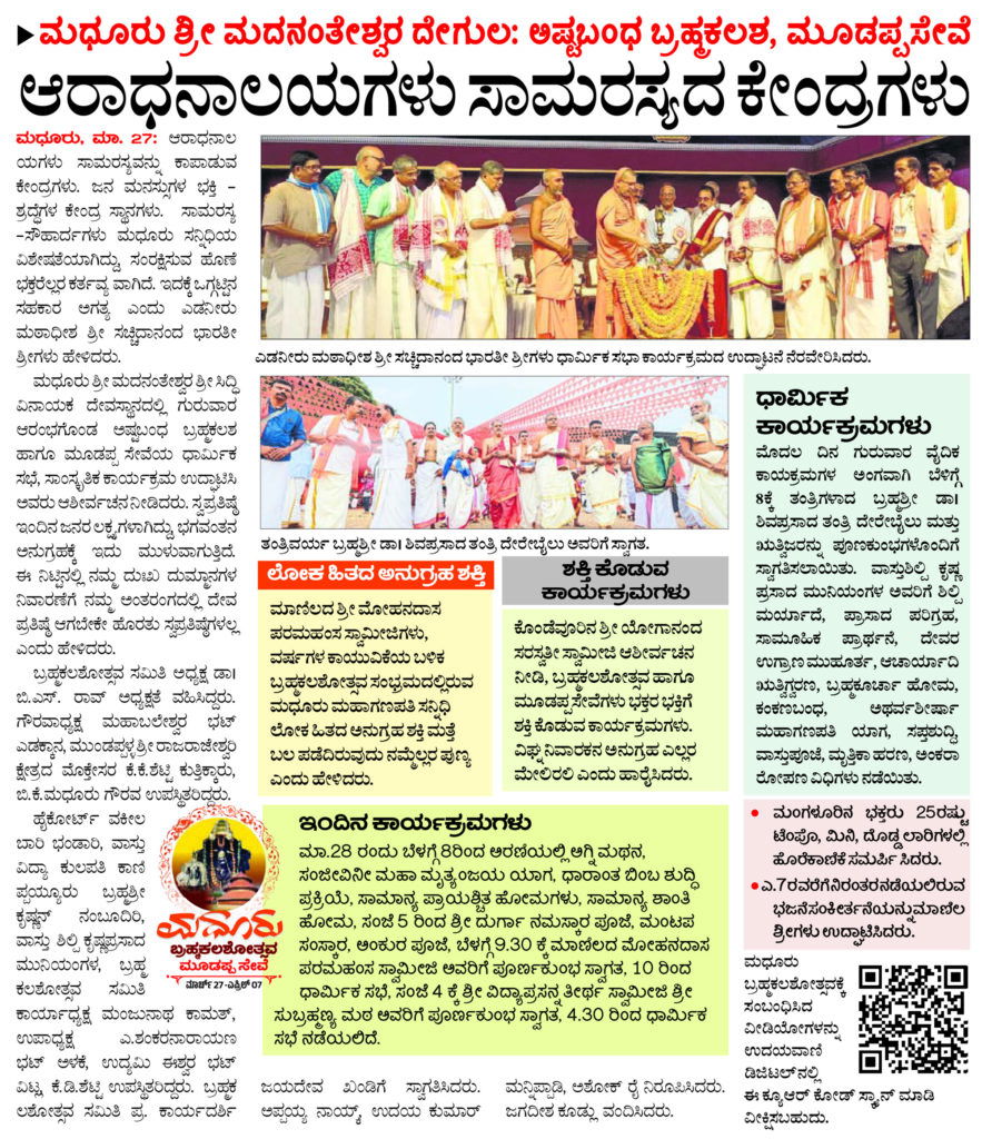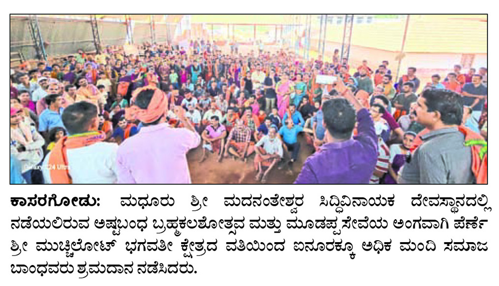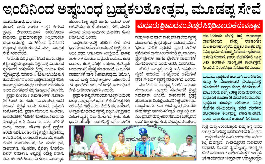 ಮಧೂರು ಬ್ರಹ್ಮಕಲಶೋತ್ಸವ, ಮೂಡಪ್ಪ ಸೇವೆ: ಧಾರ್ಮಿಕ ಕಾರ್ಯಕ್ರಮ
