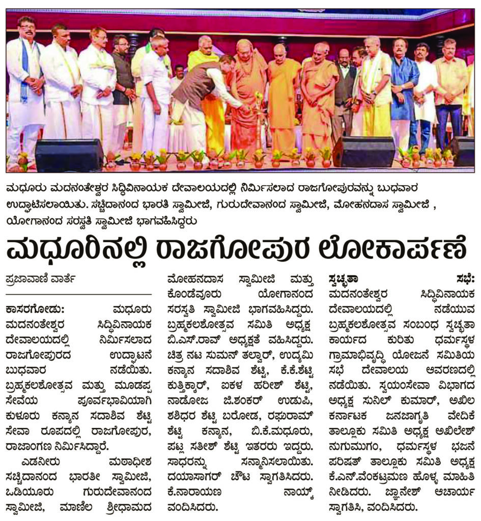 ಮಧೂರಿನಲ್ಲಿ ರಾಜಗೋಪುರ ಉದ್ಘಾಟನೆ