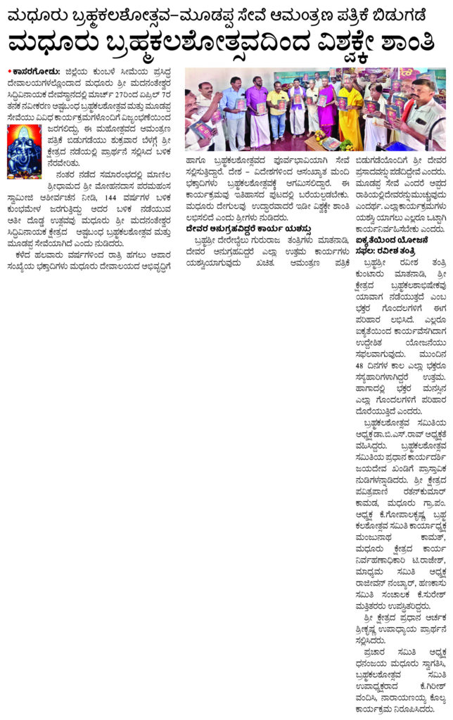 ಮಧೂರು ಕ್ಷೇತ್ರ ಬ್ರಹ್ಮಕಲಶೋತ್ಸವ ಆಮಂತ್ರಣ ಪತ್ರ ಬಿಡುಗಡೆ