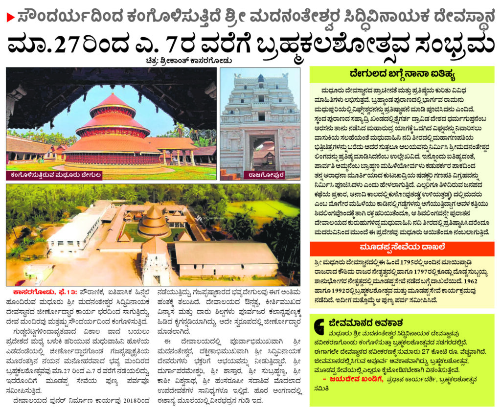 ಸೌಂದರ್ಯದಿಂದ ಕಂಗೊಳಿಸುತ್ತಿದೆ ಶ್ರೀ ಮದನಂತೇಶ್ವರ ಸಿದ್ಧಿವಿನಾಯಕ ದೇವಸ್ಥಾನ – ಮಾ. 27ರಿಂದ ಎ. 7ರವರೆಗೆ ಬ್ರಹ್ಮಕಲಶೋತ್ಸವ ಸಂಭ್ರಮ