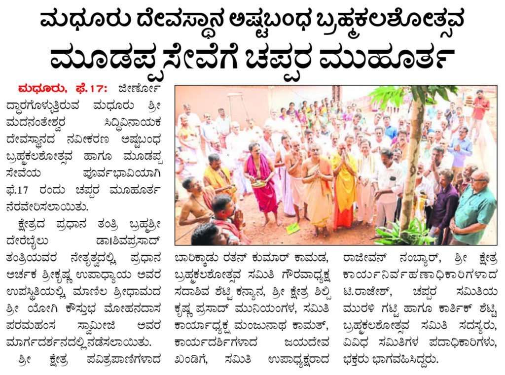 ಮಧೂರು ದೇವಾಲಯದಲ್ಲಿ ಚಪ್ಪರ ಮುಹೂರ್ತ
