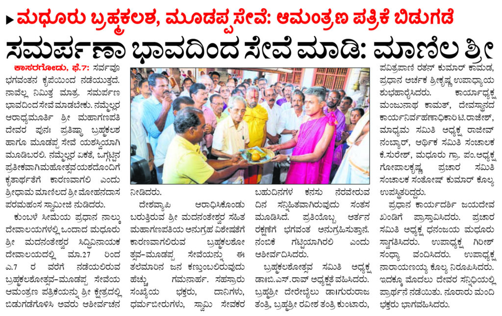 ಮಧೂರು ಬ್ರಹ್ಮಕಲಶ: ಆಮಂತ್ರಣ ಬಿಡುಗಡೆ