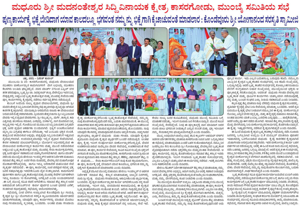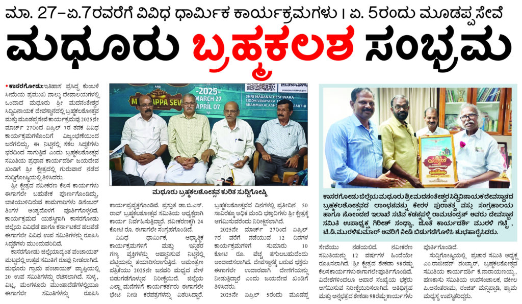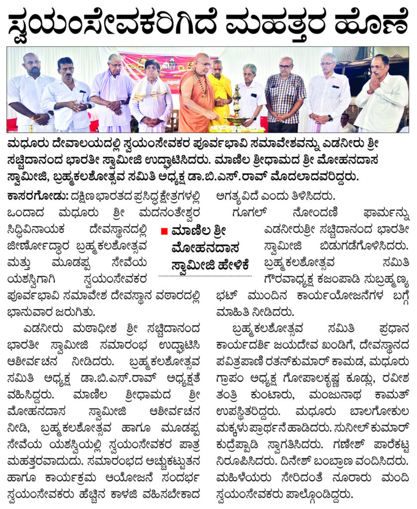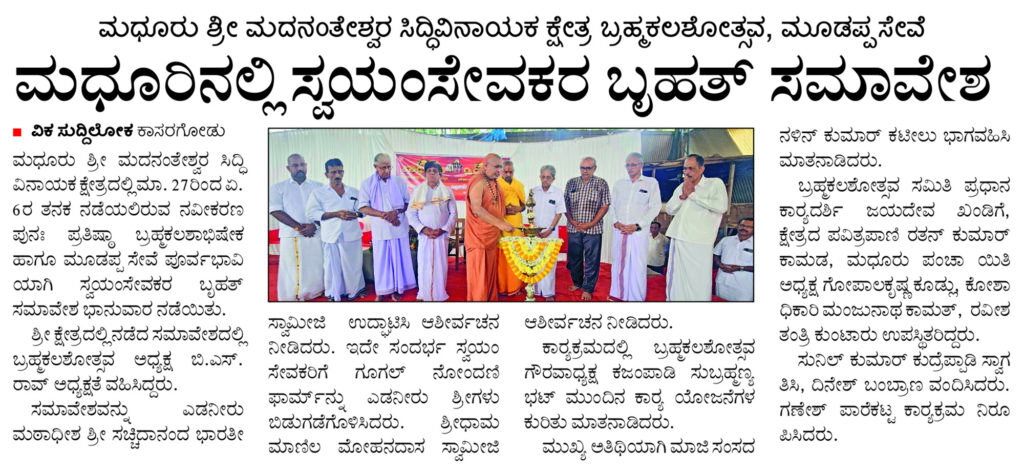 ಮಧೂರು ಬ್ರಹ್ಮಕಲಶದಲ್ಲಿ ತ್ರಿವಿಧ ಸೇವೆಗೆ ನಿರ್ಧಾರ