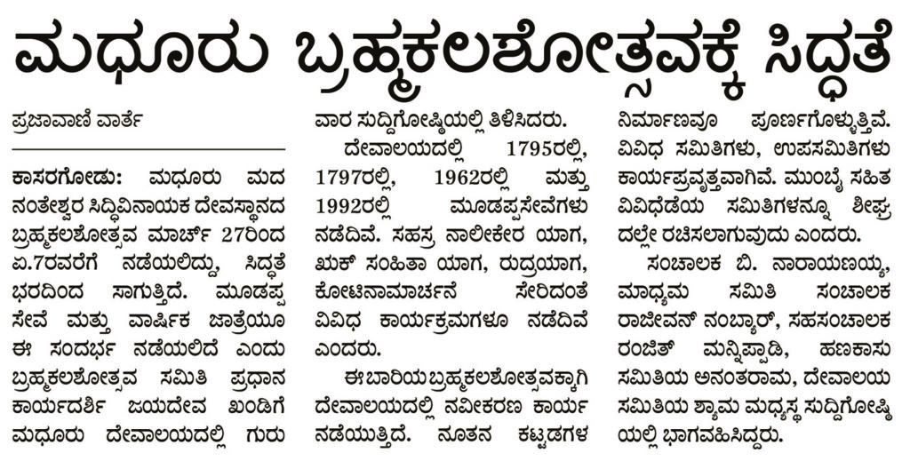 ಮಧೂರು ಬ್ರಹ್ಮಕಲಶೋತ್ಸವಕ್ಕೆ ಸಿದ್ಧತೆ
