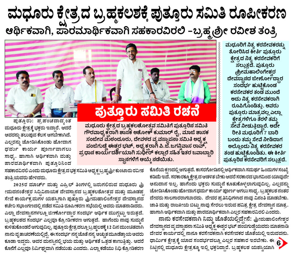 ಮಧೂರು ಕ್ಷೇತ್ರದ ಬ್ರಹ್ಮಕಲಶಕ್ಕೆ ಪುತ್ತೂರು ಸಮಿತಿ ರೂಪೀಕರಣ
