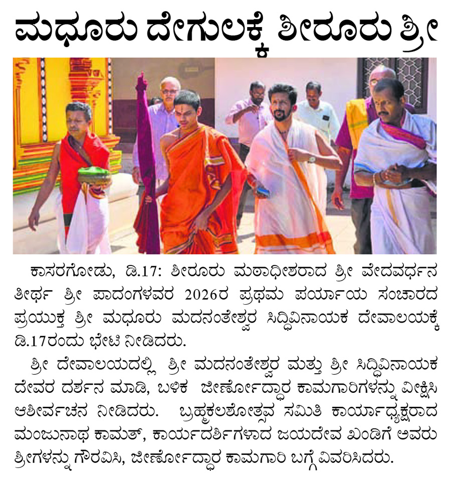 ಮಧೂರು ದೇಗುಲಕ್ಕೆ ಶೀರೂರು ಶ್ರೀ