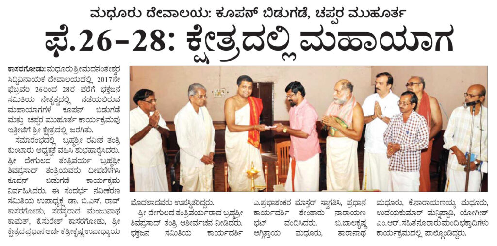 ಮಧೂರು ದೇವಾಲಯ: ಕೂಪನ್ ಬಿಡುಗಡೆ, ಚಪ್ಪರ ಮುಹೂರ್ತ