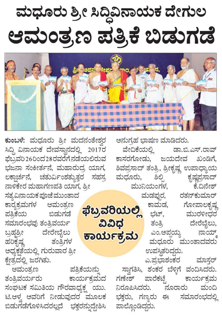 ಮಧೂರು ಶ್ರೀ ಸಿದ್ಧಿವಿನಾಯಕ ದೇಗುಲ ಆಮಂತ್ರಣ ಪತ್ರಿಕೆ ಬಿಡುಗಡೆ