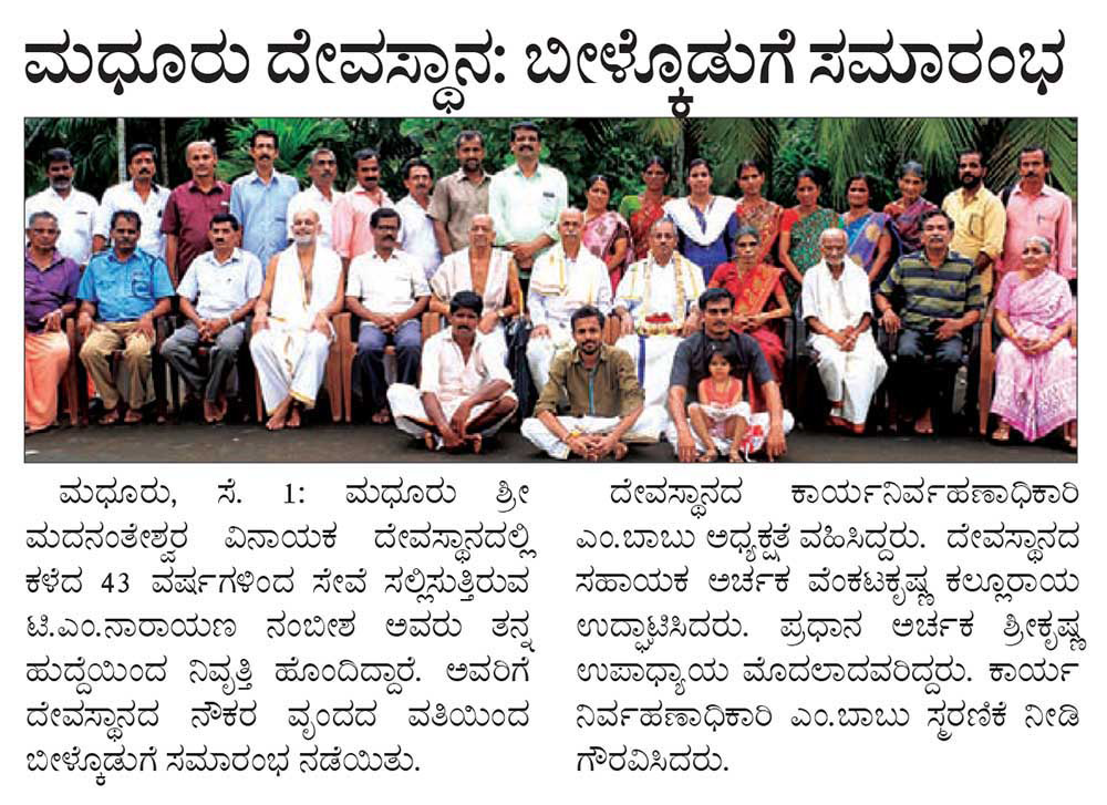 ಮಧೂರು ದೇವಸ್ಥಾನ: ಬೀಳ್ಕೊಡುಗೆ ಸಮಾರಂಭ