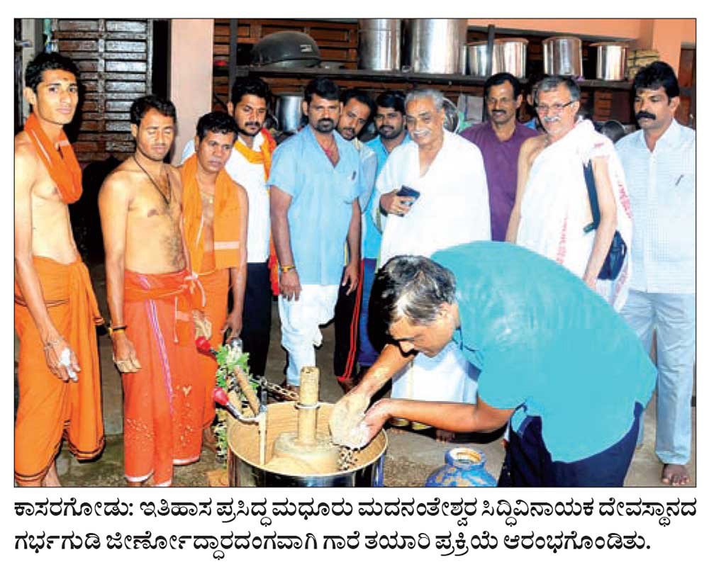 ಮಧೂರು ದೇವಾಲಯ: ಜೀರ್ಣೋದ್ಧಾರದಂಗವಾಗಿ ಗಾರೆ ತಯಾರಿ ಪ್ರಕ್ರಿಯೆ