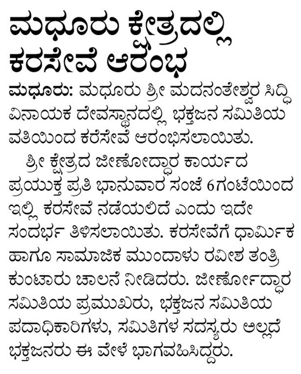 ಮಧೂರು ಕ್ಷೇತ್ರದಲ್ಲಿ ಕರಸೇವೆ ಆರಂಭ