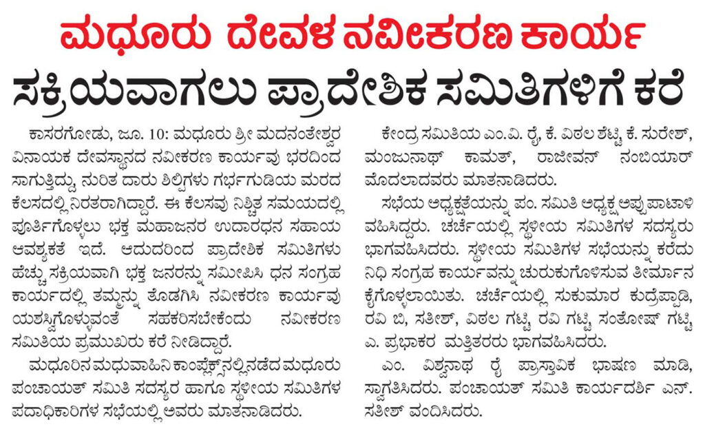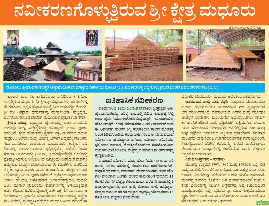 ಮಧೂರು ದೇವಳ ನವೀಕರಣ ಕಾರ್ಯ