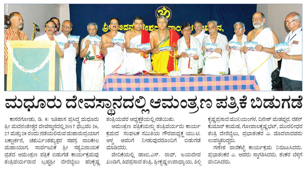 ಮಧೂರು ದೇವಸ್ಥಾನದಲ್ಲಿ ಆಮಂತ್ರಣ ಪತ್ರಿಕೆ ಬಿಡುಗಡೆ