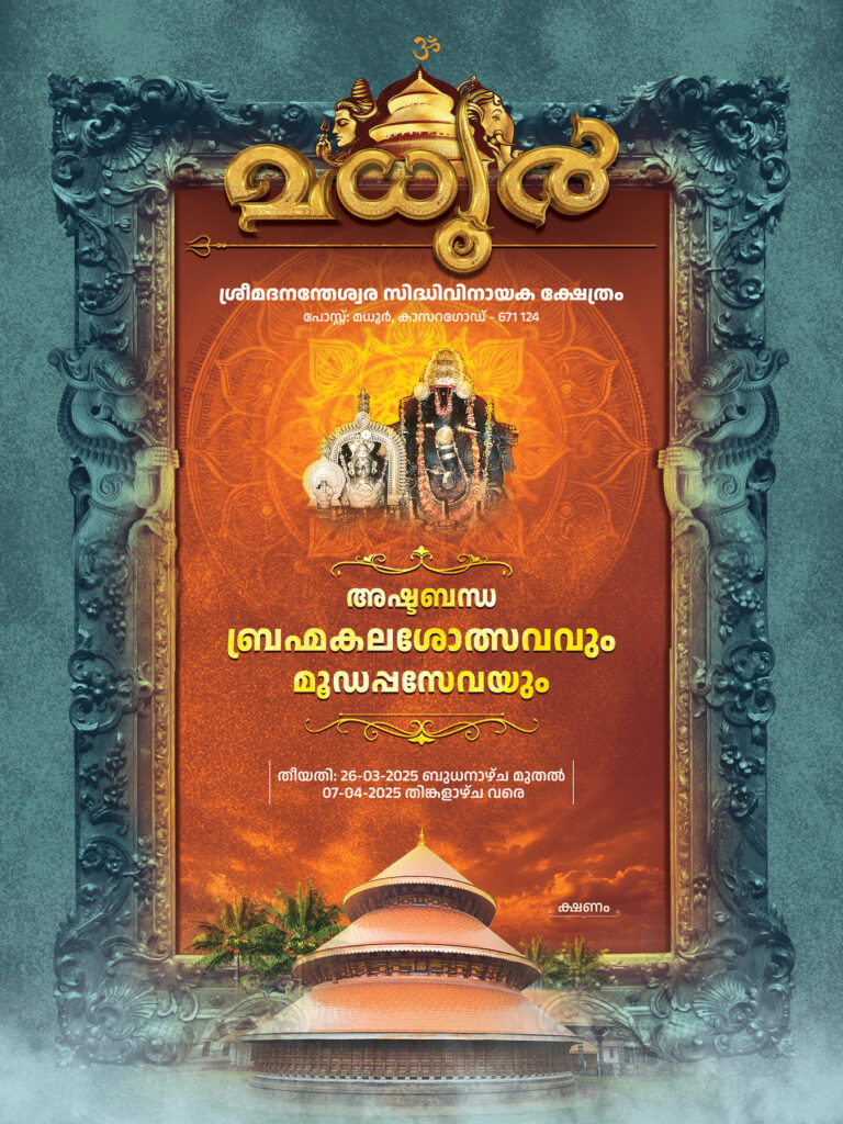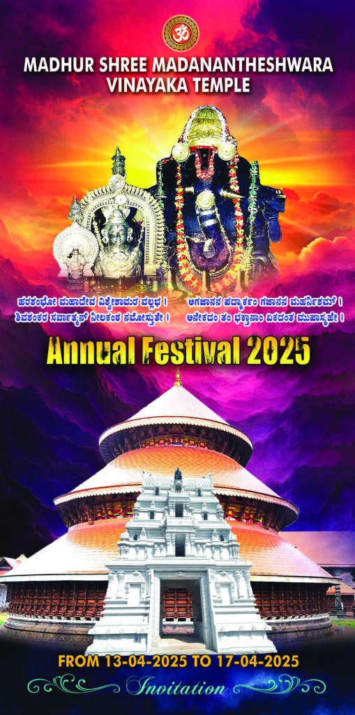 01-03-2025ಮಧೂರು : ಮಧೂರು ಶ್ರೀಮದನಂತೇಶ್ವರ ಸಿದ್ಧಿವಿನಾಯಕ ದೇವಸ್ಥಾನದಲ್ಲಿ ದಿನಾಂಕ 27 ಮಾರ್ಚ್ 2025ರಿಂದ 7 ಎಪ್ರಿಲ್ 2025ರ ವರೆಗೆ ನಡೆಯಲಿರುವ ಅಷ್ಟಬಂಧ ಬ್ರಹ್ಮಕಲಶೋತ್ಸವ ಹಾಗೂ ಮೂಡಪ್ಪ ಸೇವೆಯ ಸಾಂಸ್ಕೃತಿಕ ಕಾರ್ಯಕ್ರಮಗಳ ಆಮಂತ್ರಣ ಪತ್ರಿಕೆ ಬಿಡುಗಡೆ ದಿನಾಂಕ 1 ಮಾರ್ಚ್ 2025ರಂದು ಶ್ರೀ ಕ್ಷೇತ್ರ ಆವರಣದಲ್ಲಿ ಮಾಡಲಾಯಿತು. ಪರಮಪೂಜ್ಯ ಶ್ರೀ ಶ್ರೀ ಸಚ್ಚಿದಾನಂದ ಭಾರತೀ ಸ್ವಾಮೀಜಿಯವರು ಹಾಗೂ ಪರಮಪೂಜ್ಯ ಶ್ರೀ ಶ್ರೀ ಯೋಗಿಕೌಸ್ತುಭ ಮೋಹನದಾಸ ಪರಮಹಂಸ ಸ್ವಾಮೀಜಿಗಳು ಕಾರ್ಯಕ್ರಮದಲ್ಲಿ ಭಾಗವಹಿಸಿ ಆಶೀರ್ವಚನಗಳನ್ನು ನೀಡಿದರು. ಕಾರ್ಯಕ್ರಮದಲ್ಲಿ ಮಧೂರು ಕ್ಷೇತ್ರ ಪವಿತ್ರಪಾಣಿ