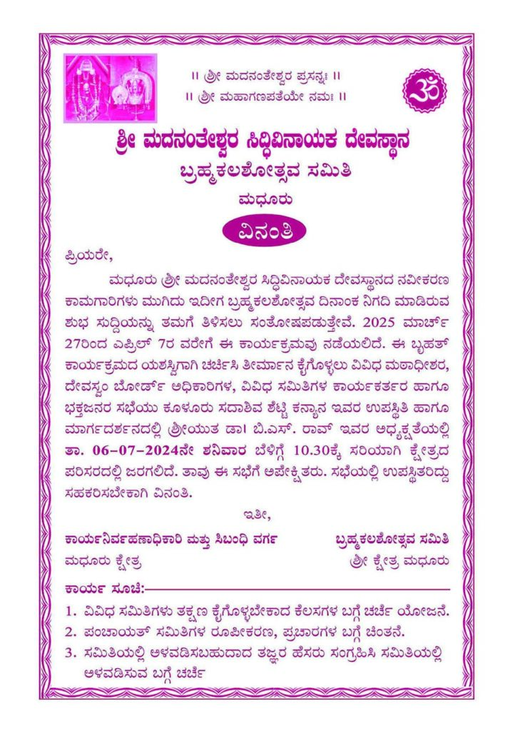 ಬ್ರಹ್ಮಕಲಶೋತ್ಸವ ದಿನಾಂಕ ಘೋಷಣೆ ಸಭೆ 2-6-2024