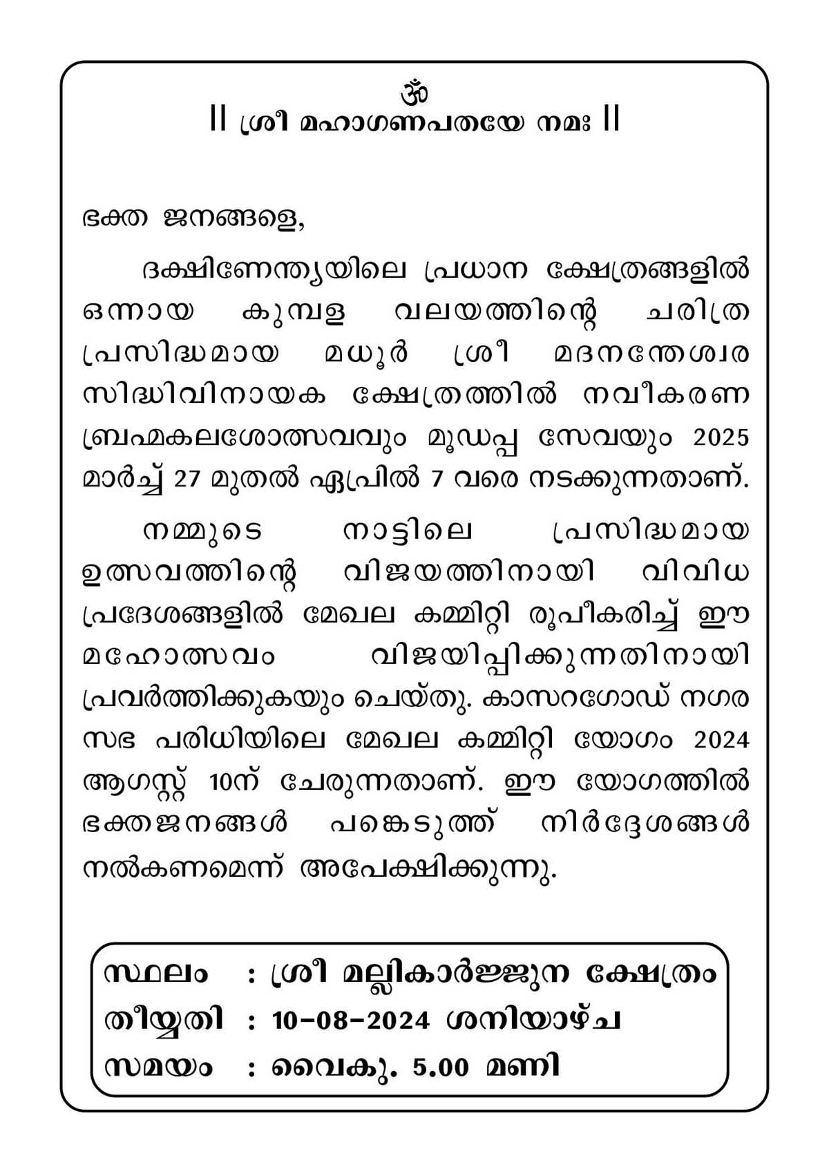 ಕಾಸರಗೋಡು ನಗರಸಭೆ ಪ್ರಾದೇಶಿಕ ಸಮಿತಿ ರೂಪೀಕರಣ ಸಭೆ 10-8-2024