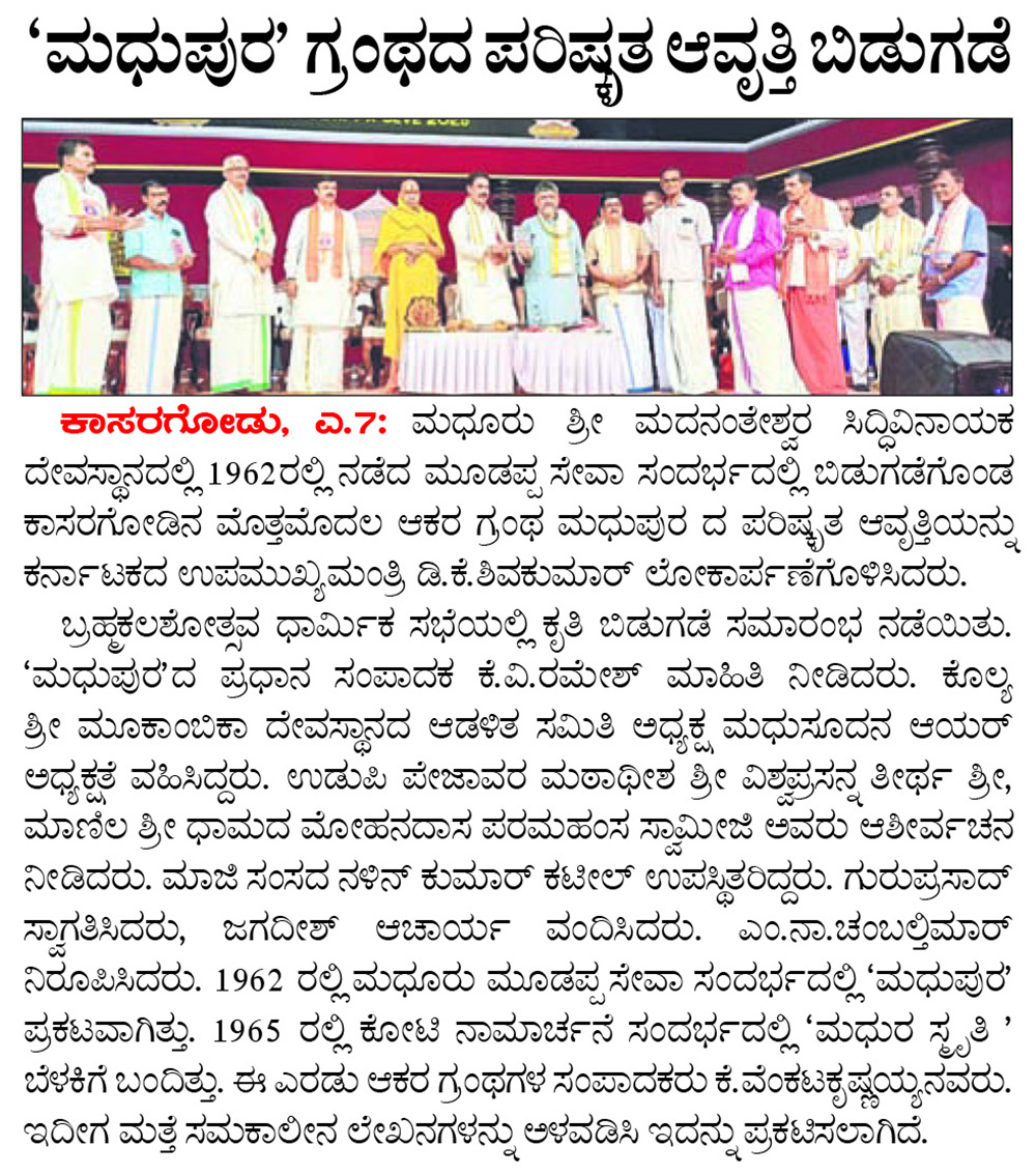 ‘ಮಧುಪುರ’ ಗ್ರಂಥದ ಪರಿಷ್ಕೃತ ಆವೃತ್ತಿ ಬಿಡುಗಡೆ