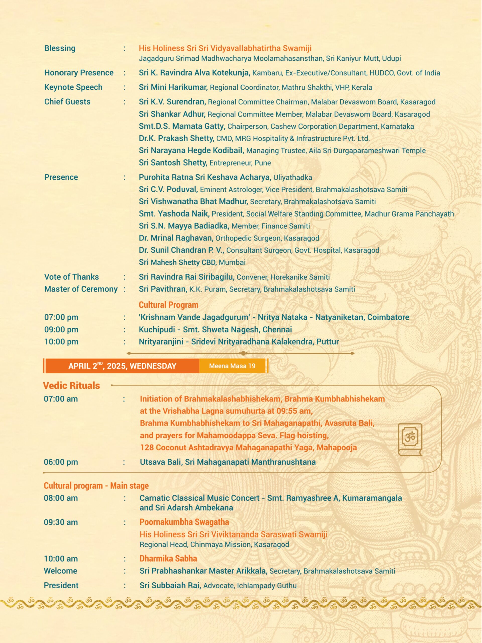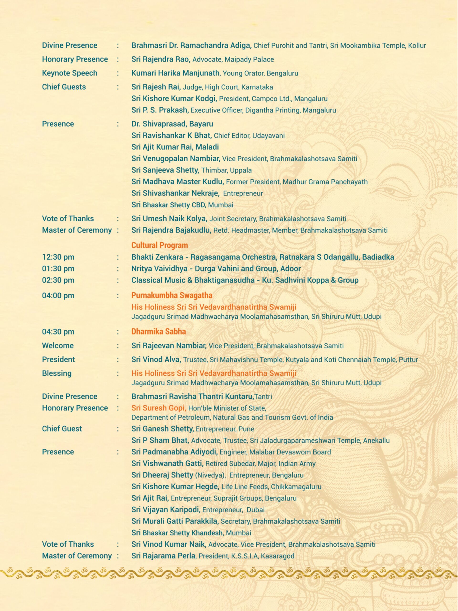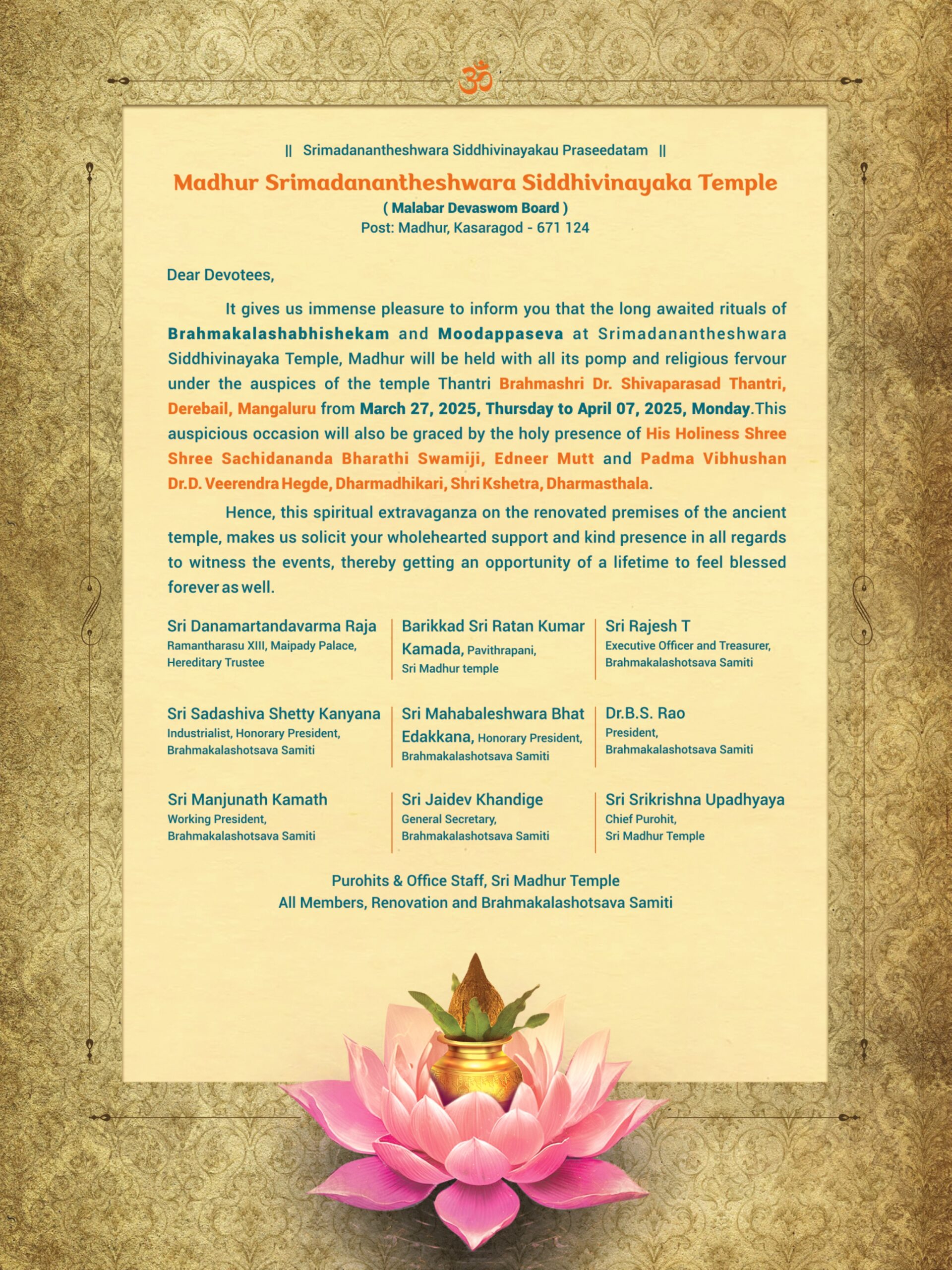 Madhur Ashtabandha Brahmakalashotsava & Moodappa Seva – English Invitation