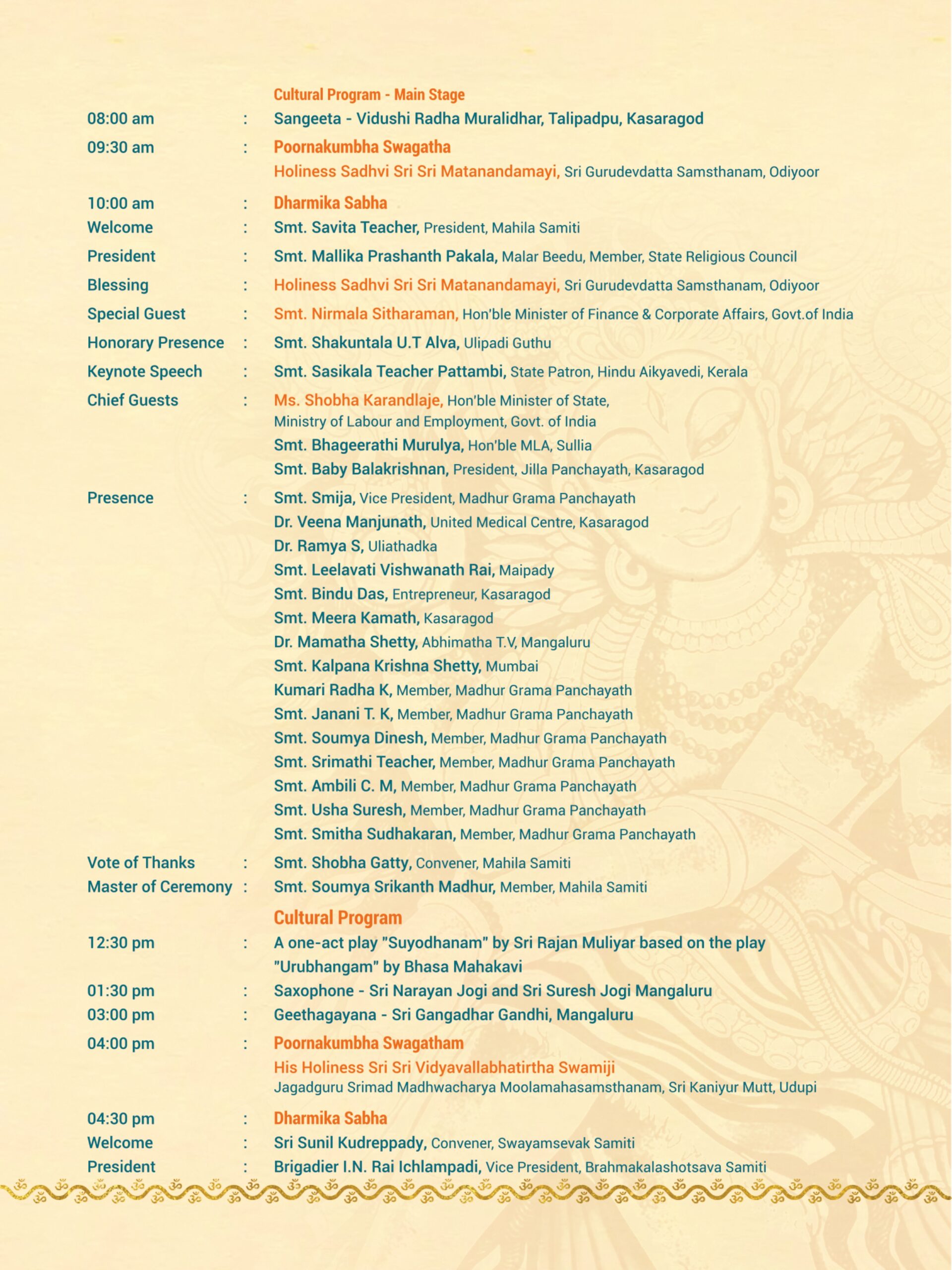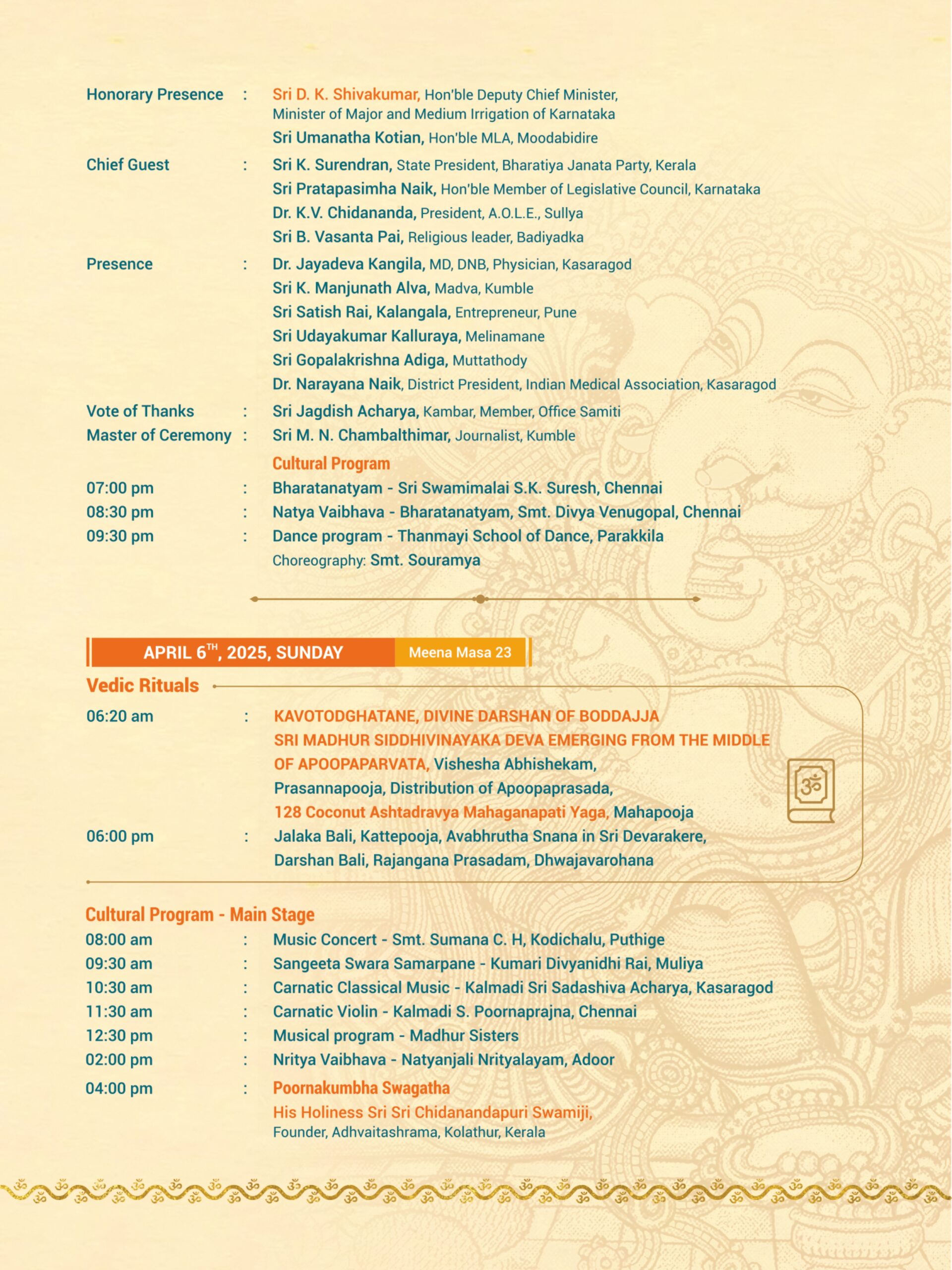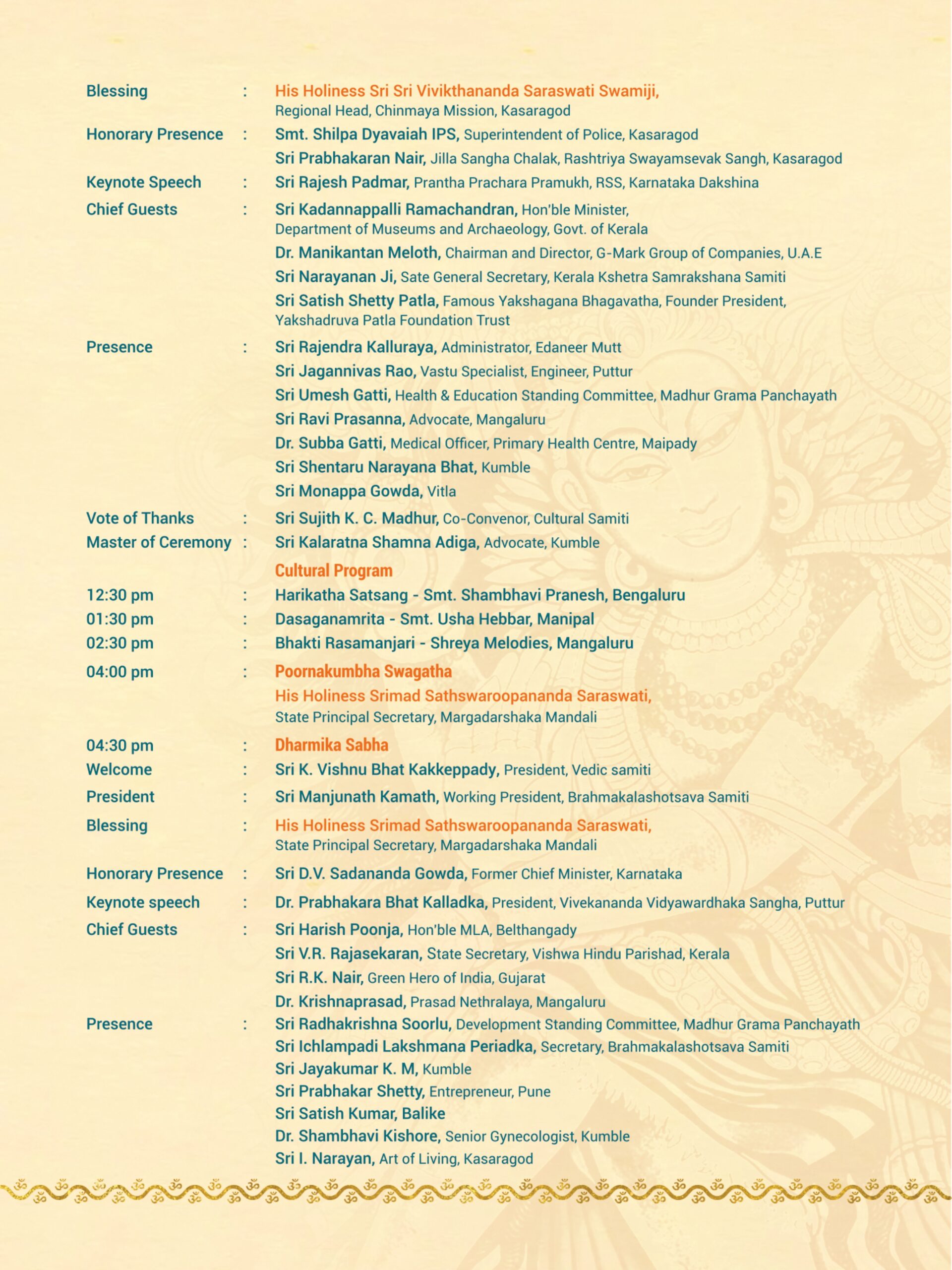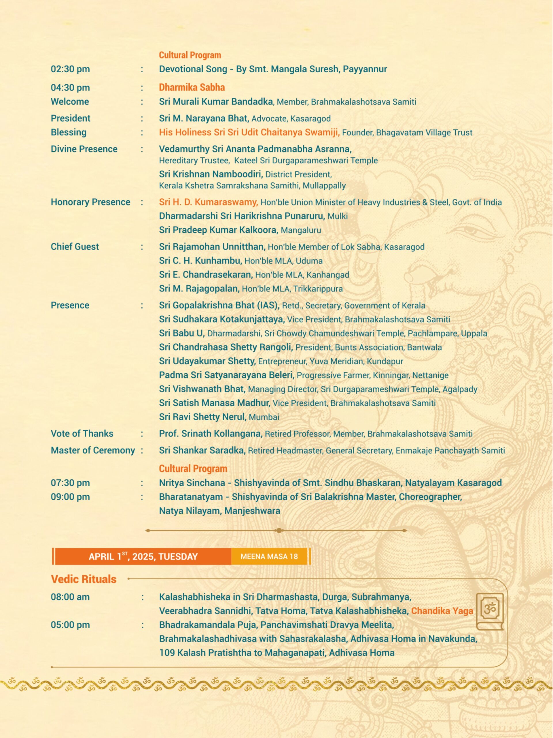Madhur Ashtabandha Brahmakalashotsava & Moodappa Seva – English Invitation