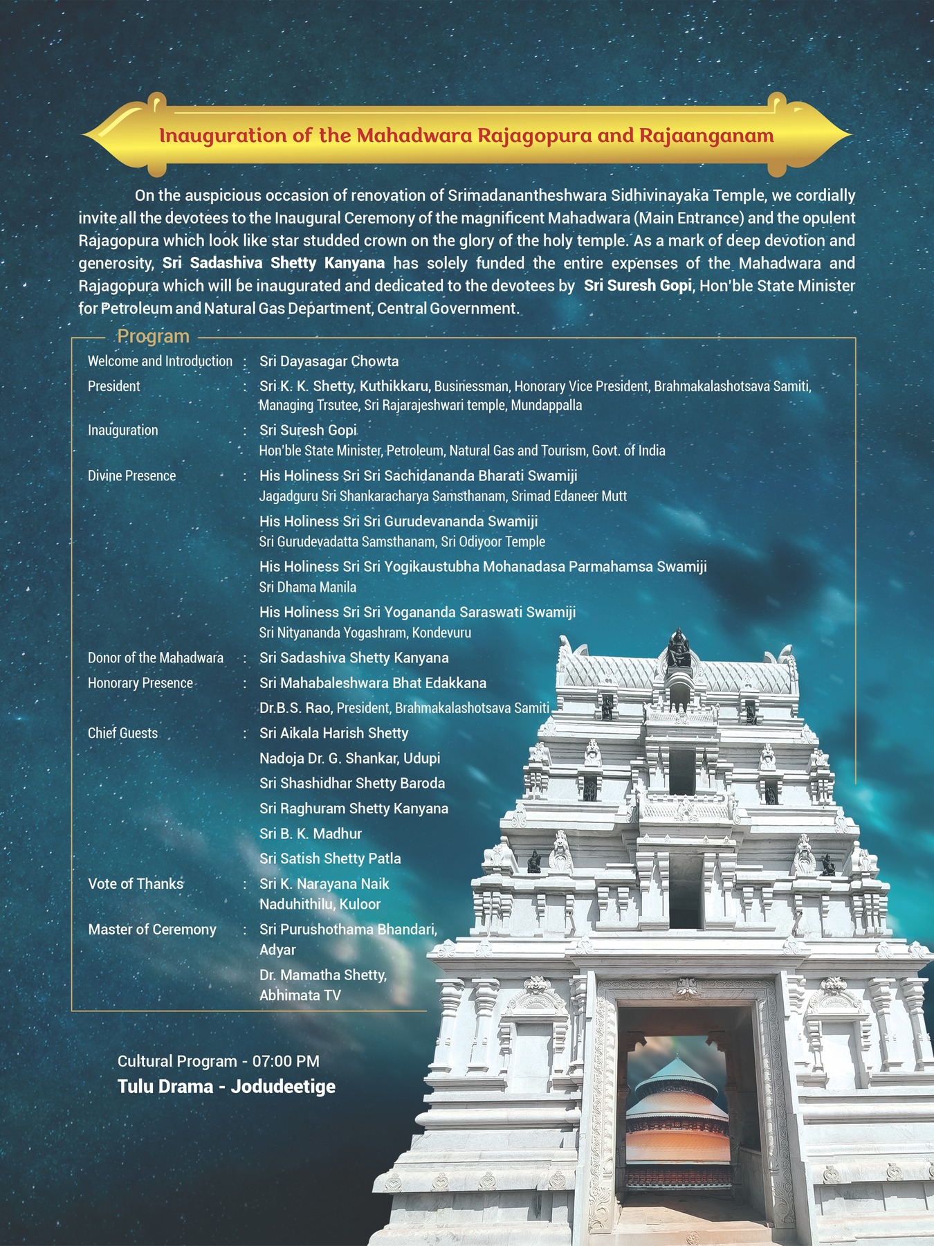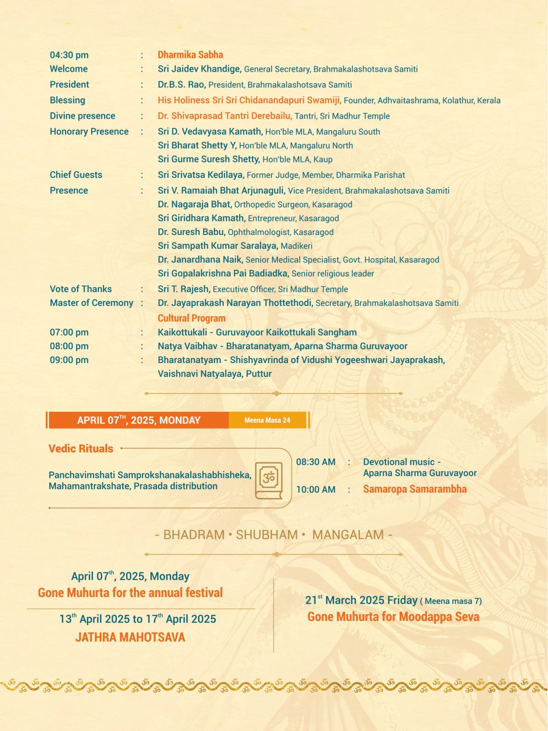 • Madhur Temple Curtain Raiser – TuluDate : 24-03-2025