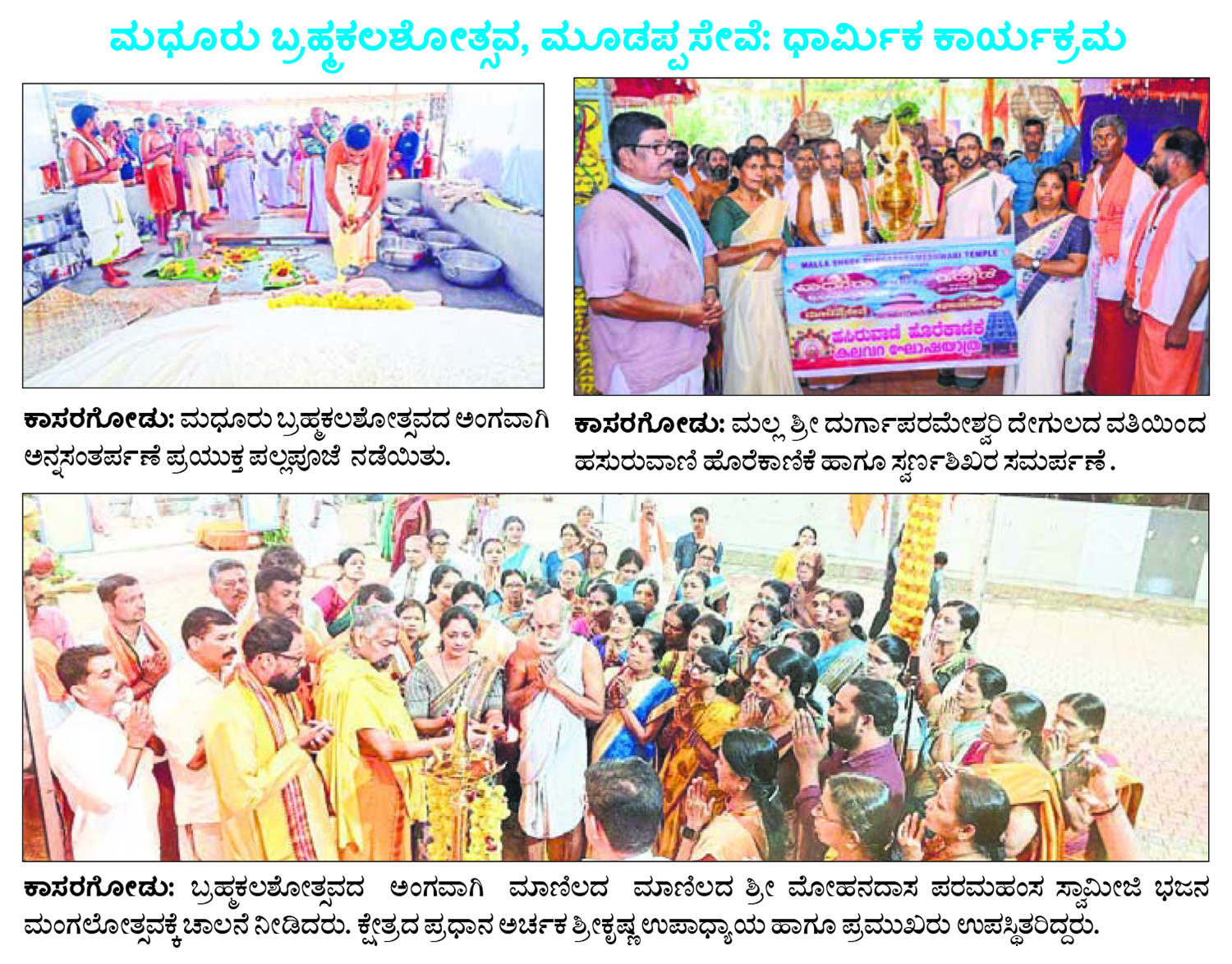 ಮಧೂರು ಬ್ರಹ್ಮಕಲಶೋತ್ಸವ, ಮೂಡಪ್ಪ ಸೇವೆ: ಧಾರ್ಮಿಕ ಕಾರ್ಯಕ್ರಮ