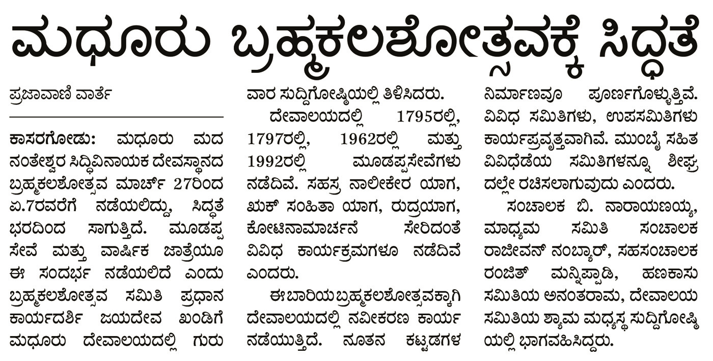 ಮಧೂರು ಬ್ರಹ್ಮಕಲಶೋತ್ಸವಕ್ಕೆ ಸಿದ್ಧತೆ