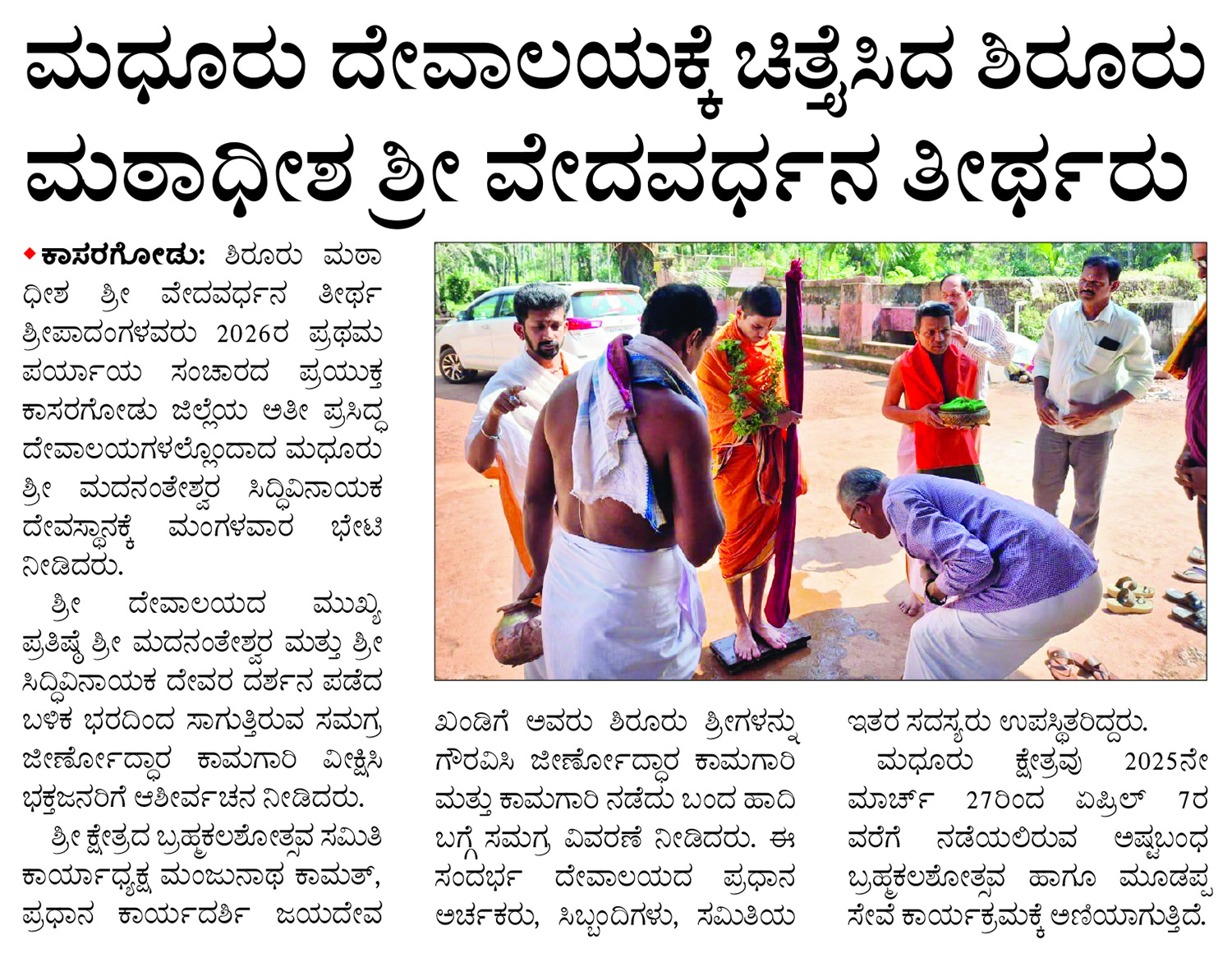 ಮಧೂರು ದೇವಾಲಯಕ್ಕೆ ಚಿತ್ತೈಸಿದ ಶಿರೂರು ಮಠಾಧೀಶ ಶ್ರೀ ವೇದವರ್ಧನ ತೀರ್ಥರು