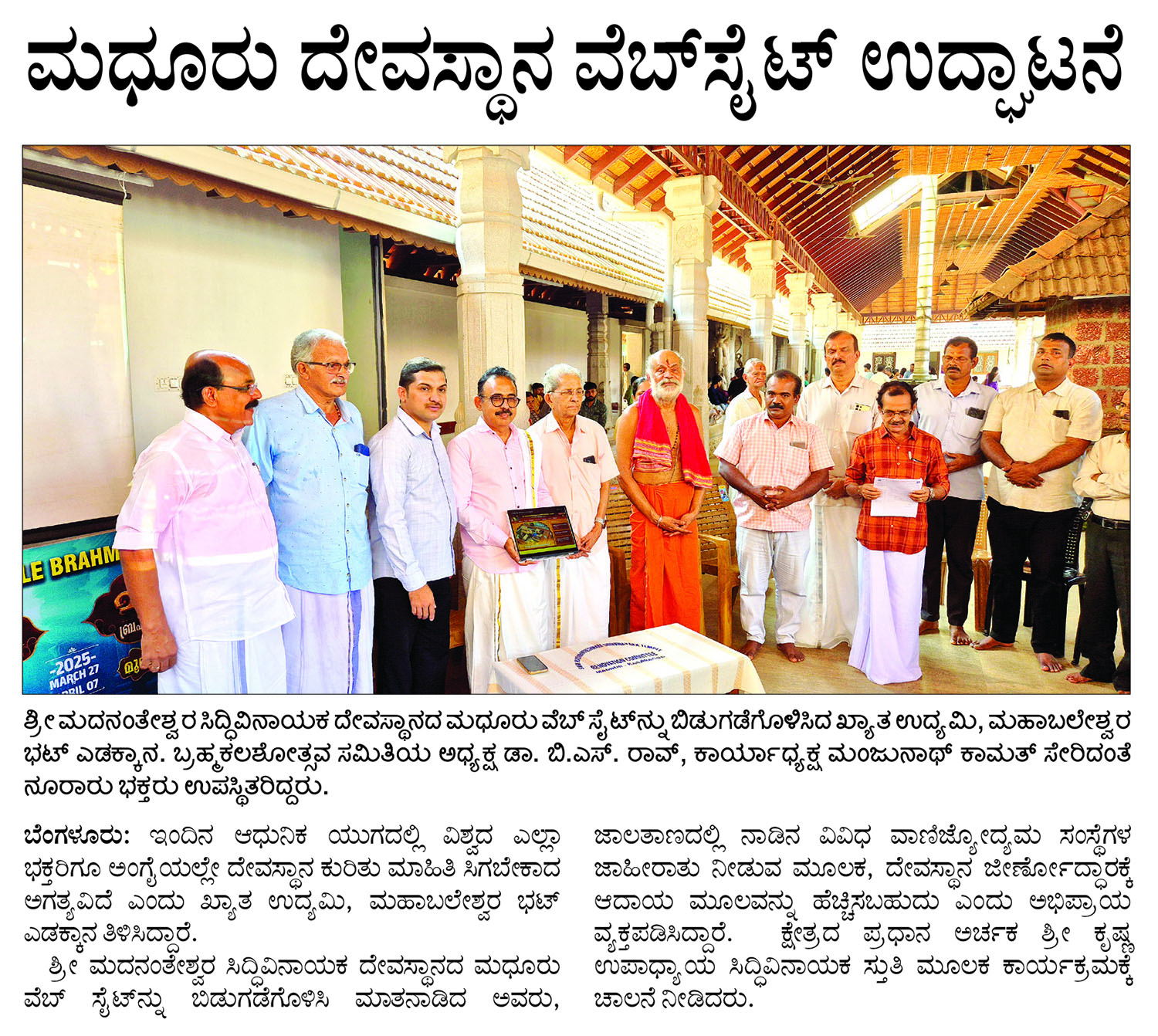 ಮಧೂರು ದೇವಸ್ಥಾನ ವೆಬ್ ಸೈಟ್ ಉದ್ಘಾಟನೆ