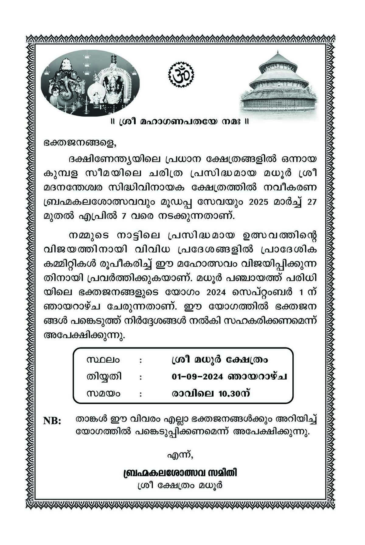 ಮಧೂರು ಗ್ರಾಮ ಪಂಚಾಯತ್ ಪ್ರಾದೇಶಿಕ ಸಮಿತಿ ರೂಪೀಕರಣ ಸಭೆ 1-9-2024