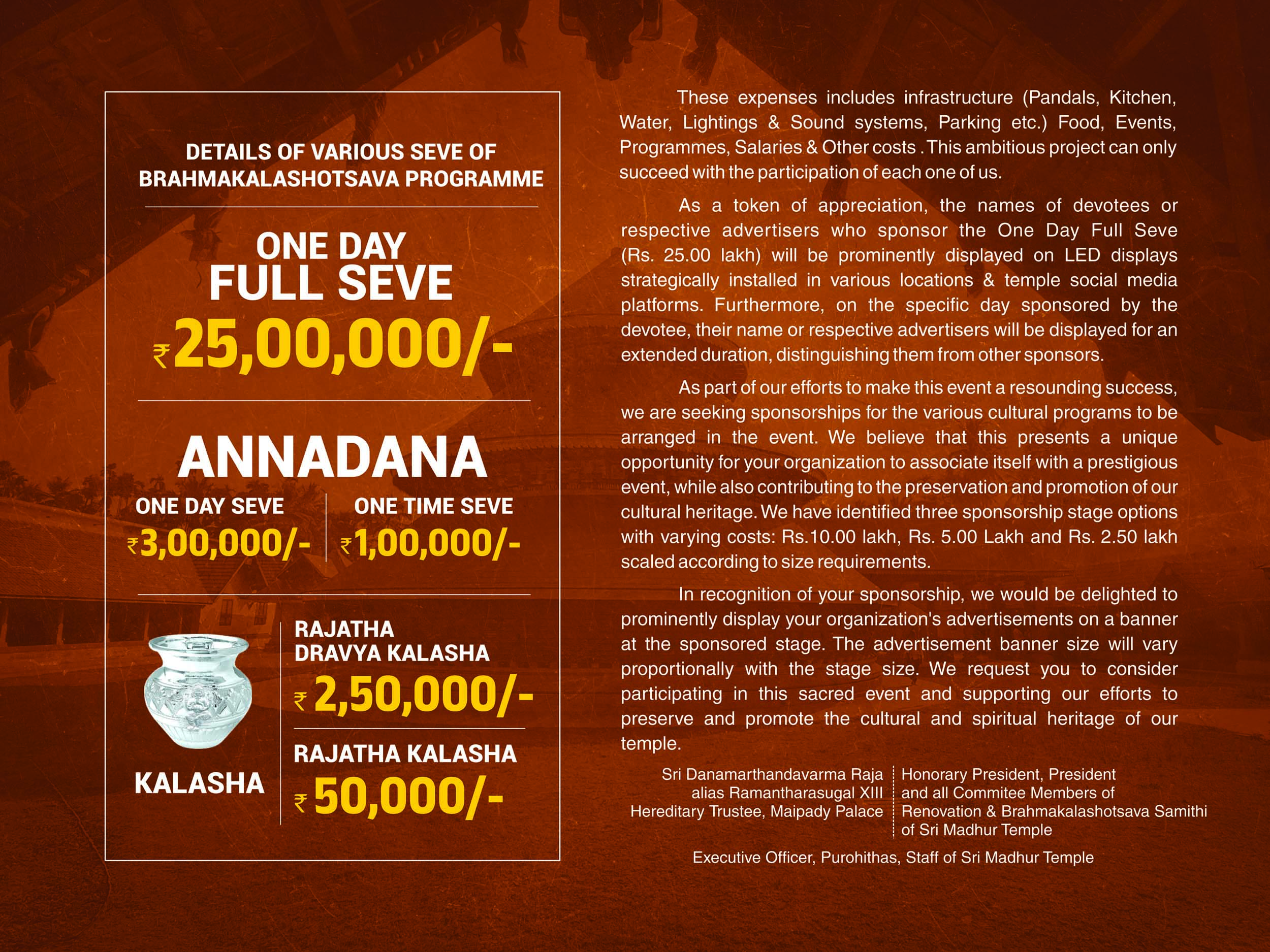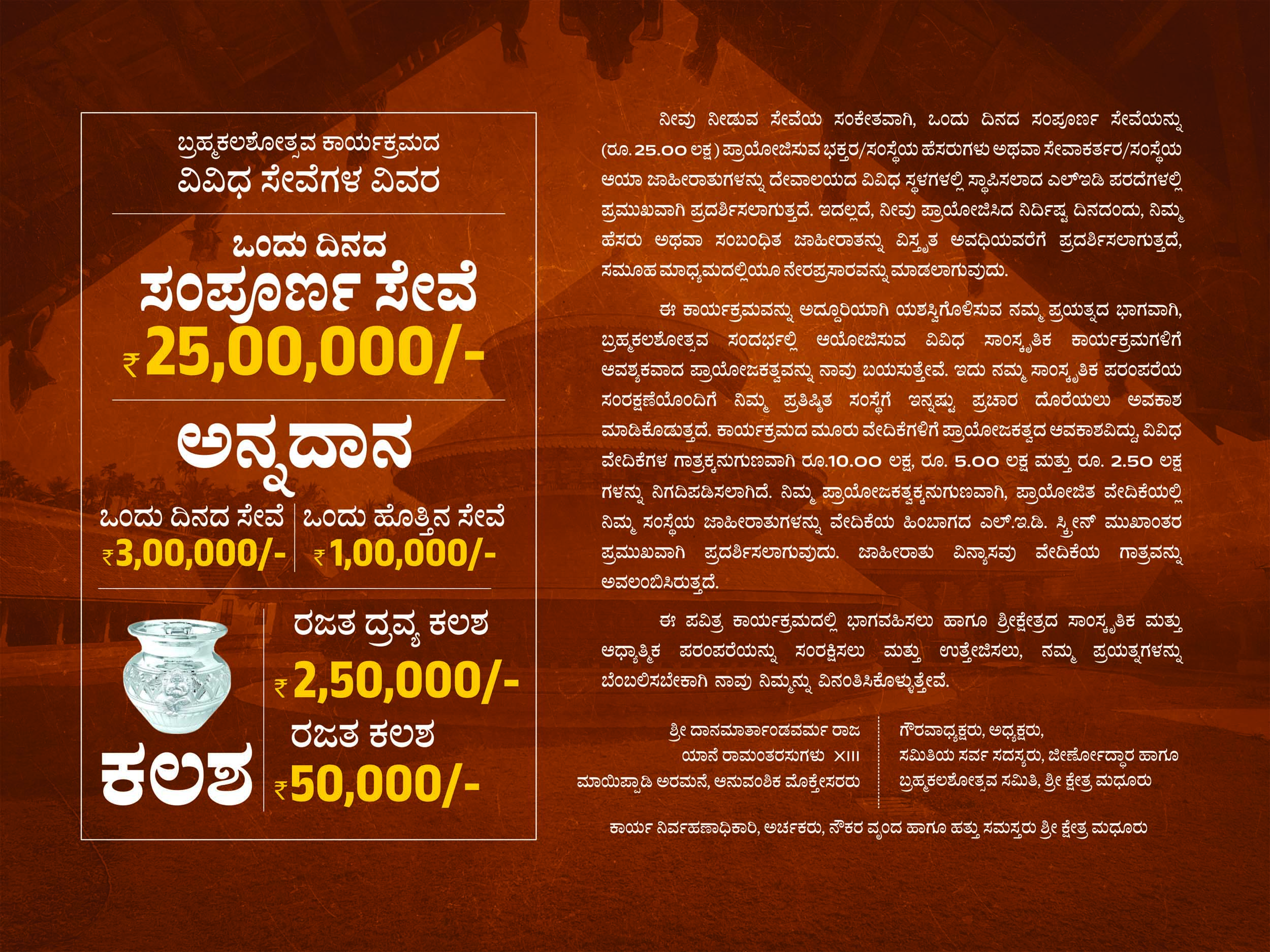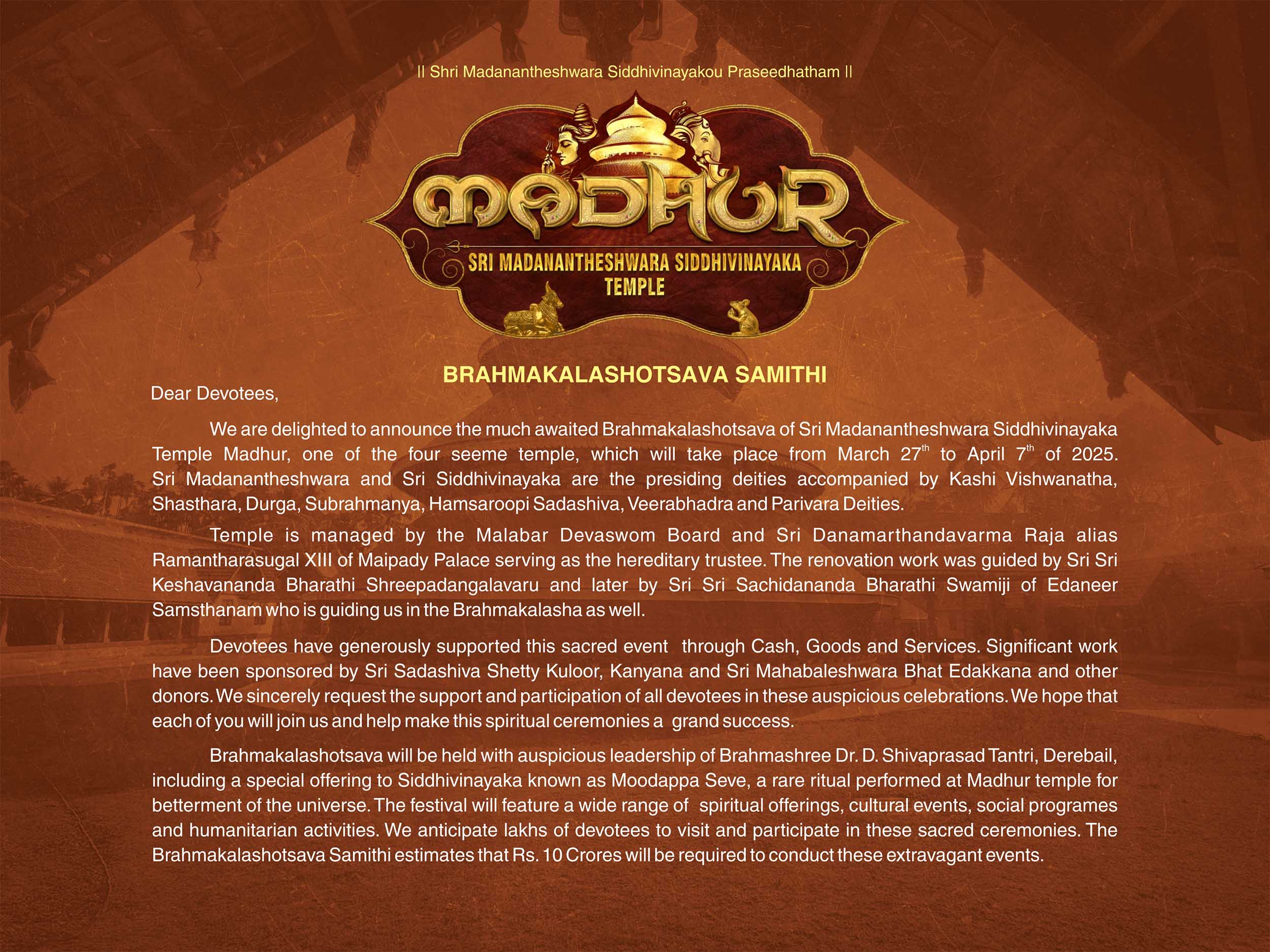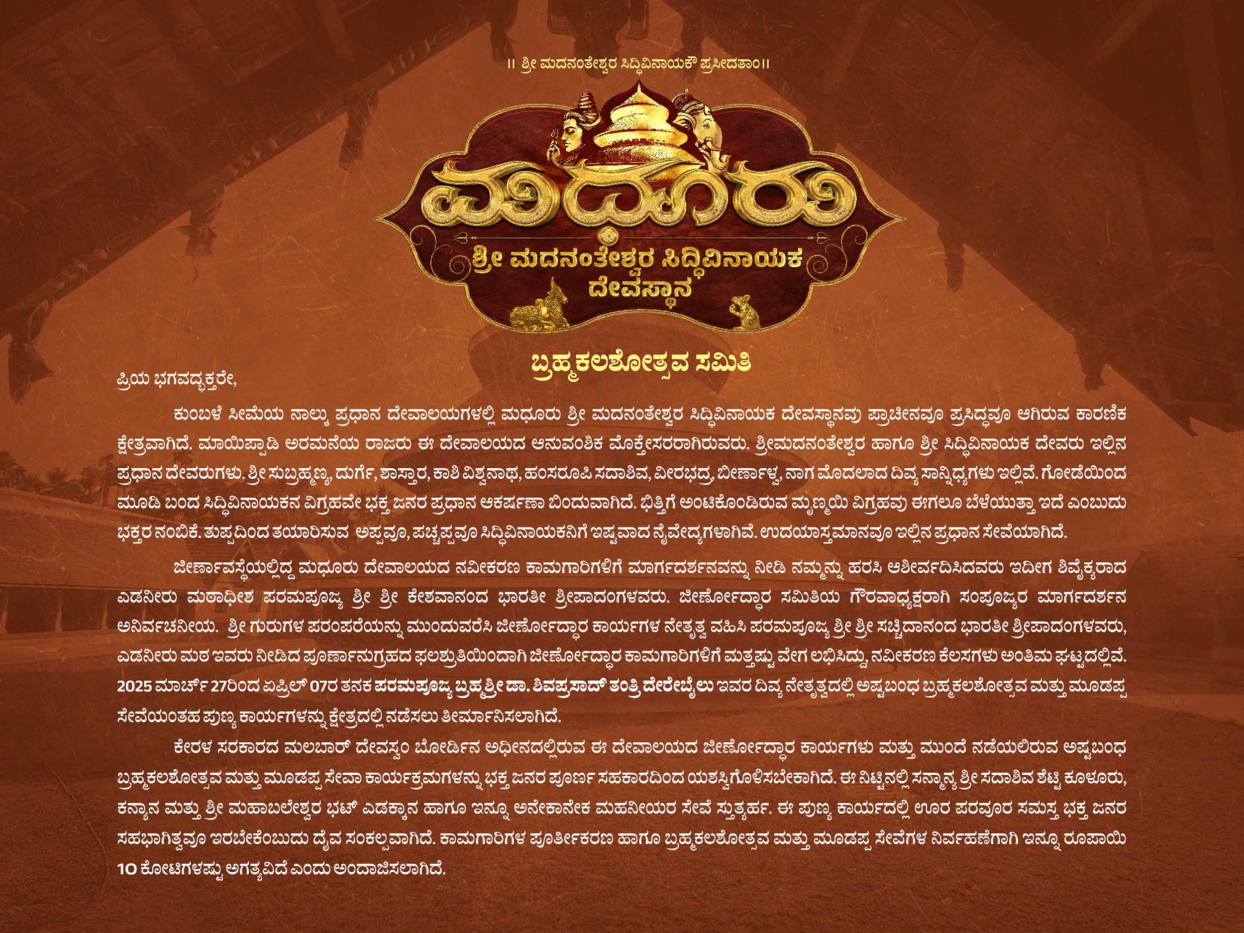 Madhur Temple Brahmakalashotsava – Appeal