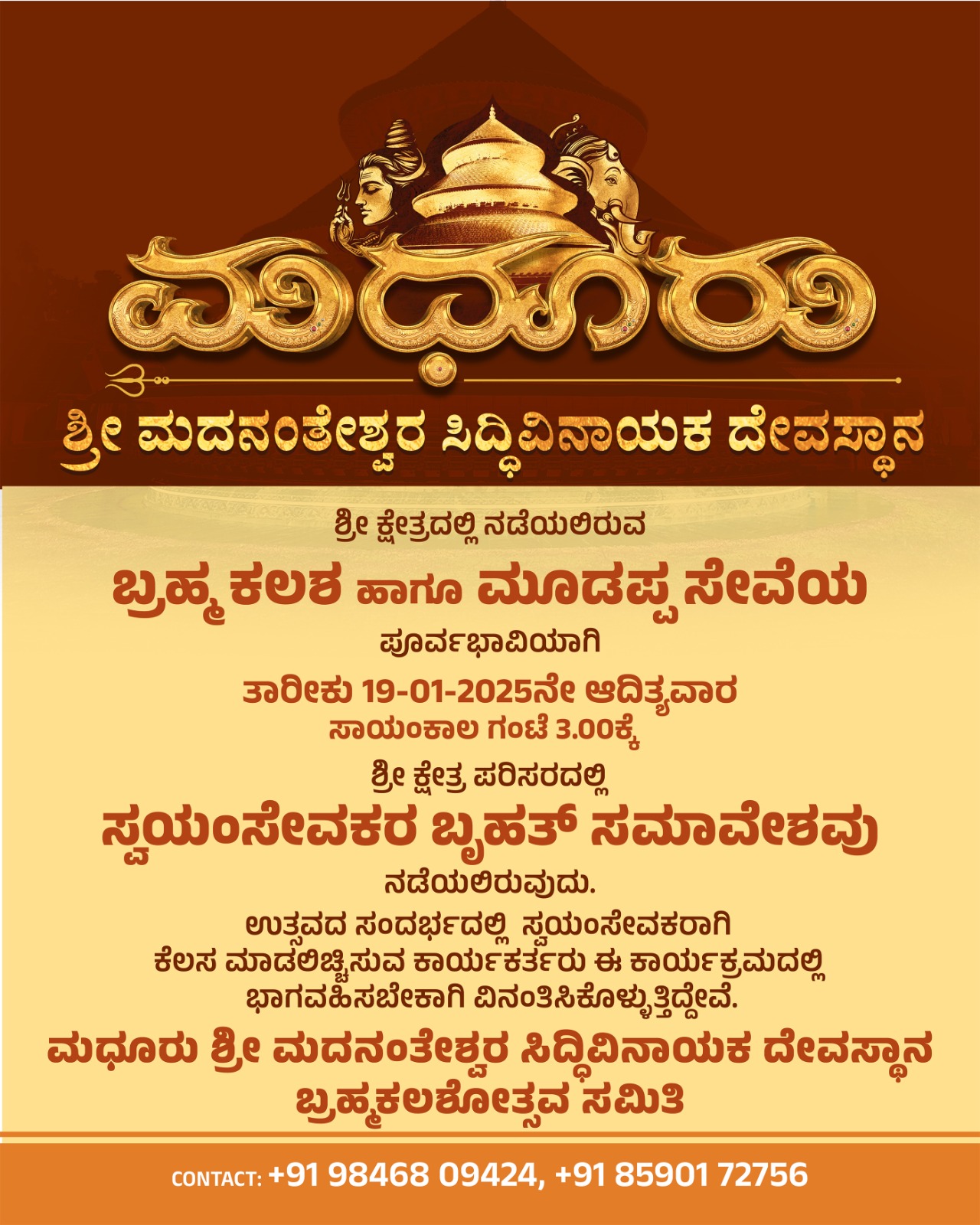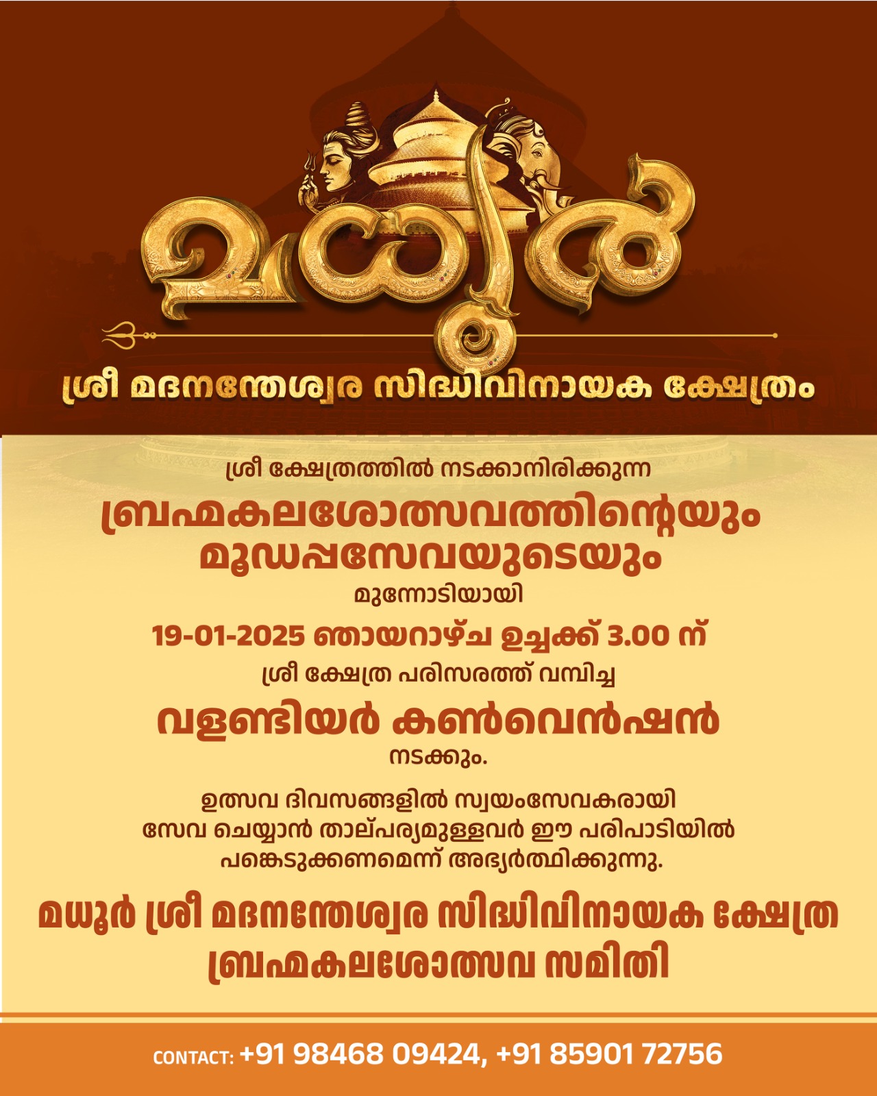 Madhur Temple Brahmakalashotsava – Volunteer Convention on 19-01-2025